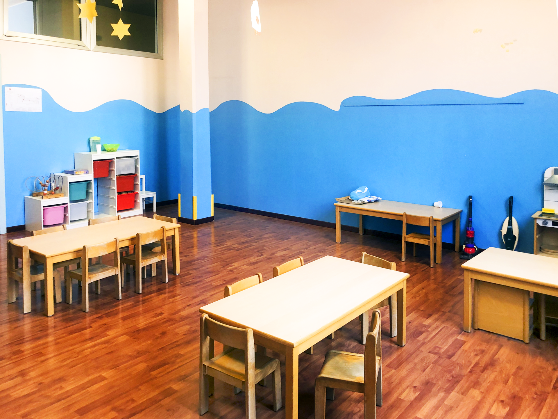 Gli spazi comprendono un’ampia sezione, la sala nanne, la palestrina e i servizi igienici.